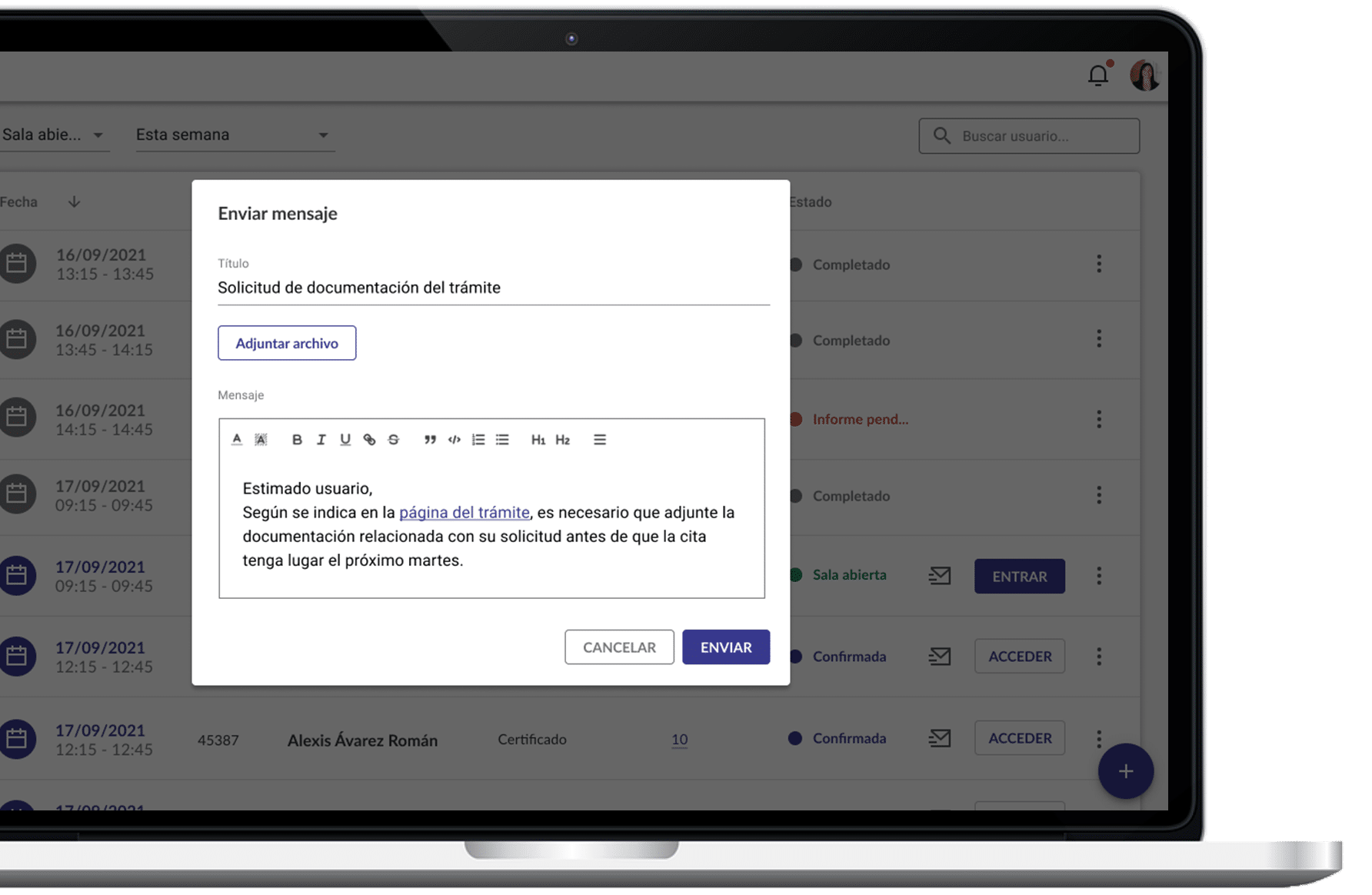 Gli appuntamenti tra un professionista del servizio e un cittadino o cliente possono essere facilmente pianificati tramite l'applicazione, sia di persona che tramite videochiamata online.